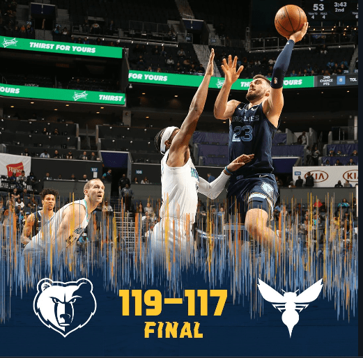 The Grizzlies, propelled by a last second layup by God Morant, won 119-117.