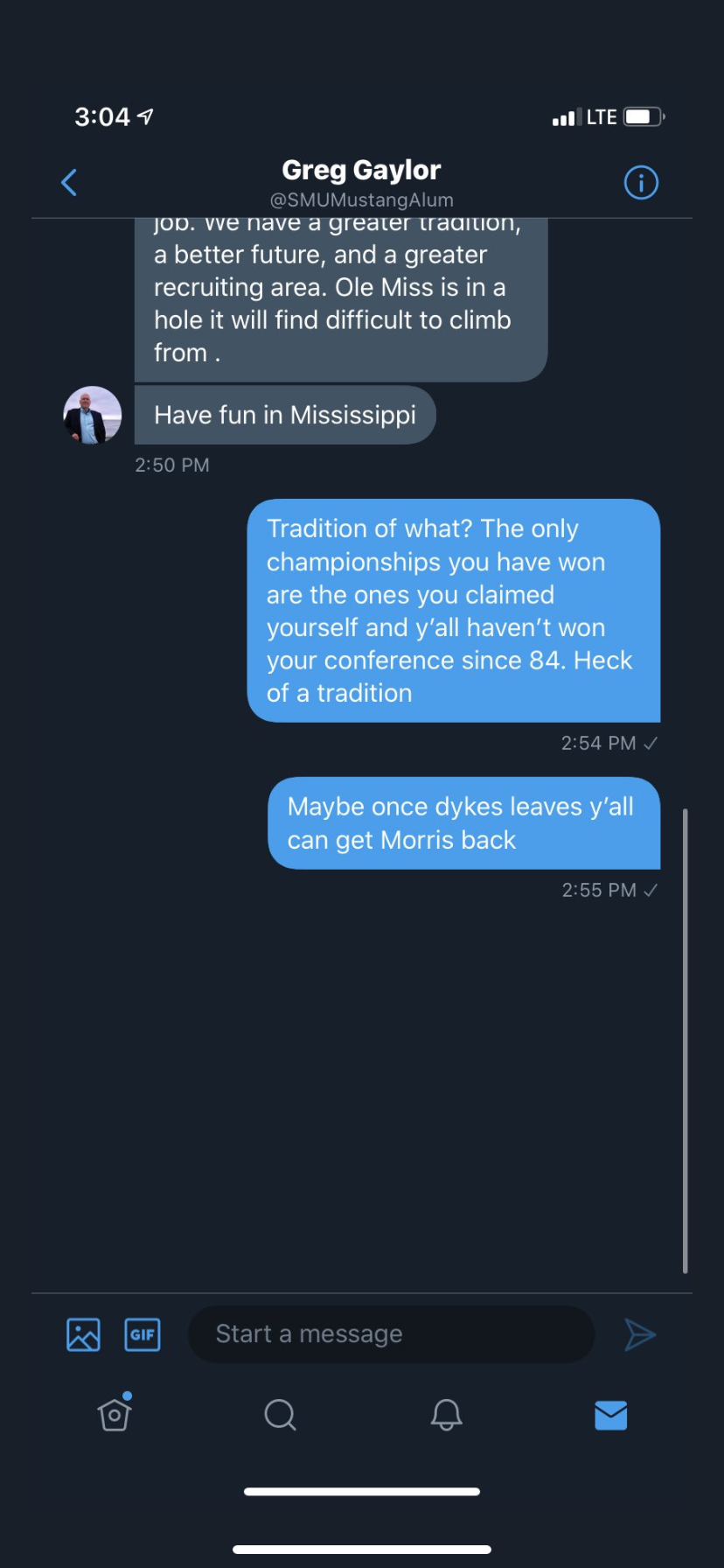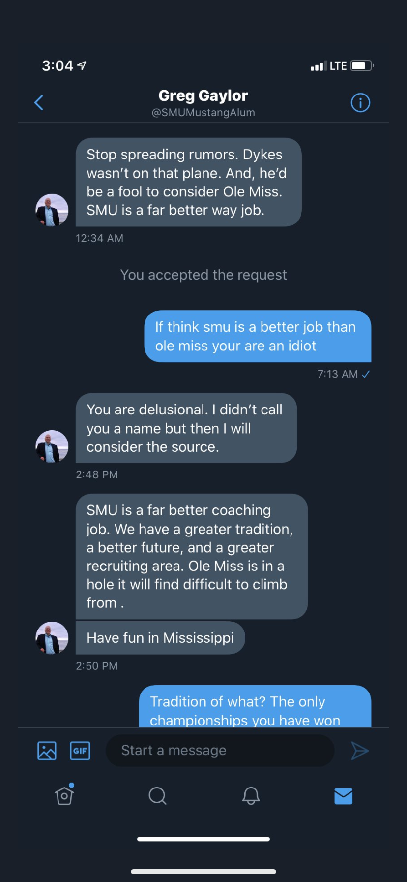 Greg was upset that I was spreading rumors. He felt very strongly that SMU was far and away a better job than Ole Miss.