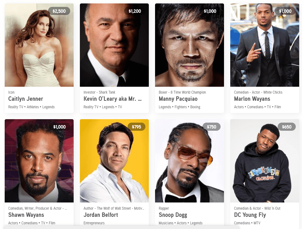 Real quick let’s see who the most expensive people are on Cameo dot come (there are more but there are the ones that stuck out):